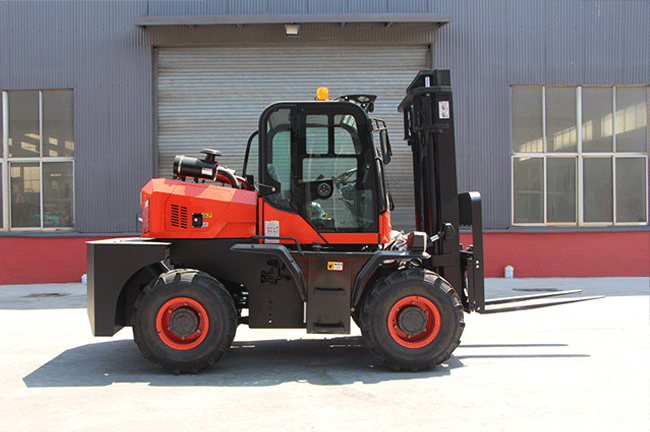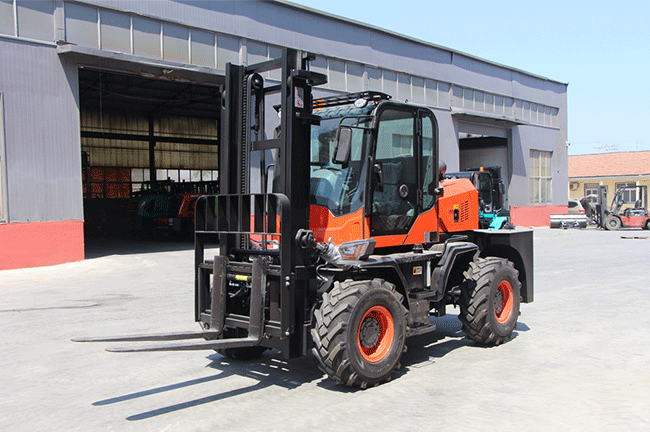 A 3,000-6,000 mm mast range gives one rough terrain forklift room for yard loading, site stacking and higher placement work.
